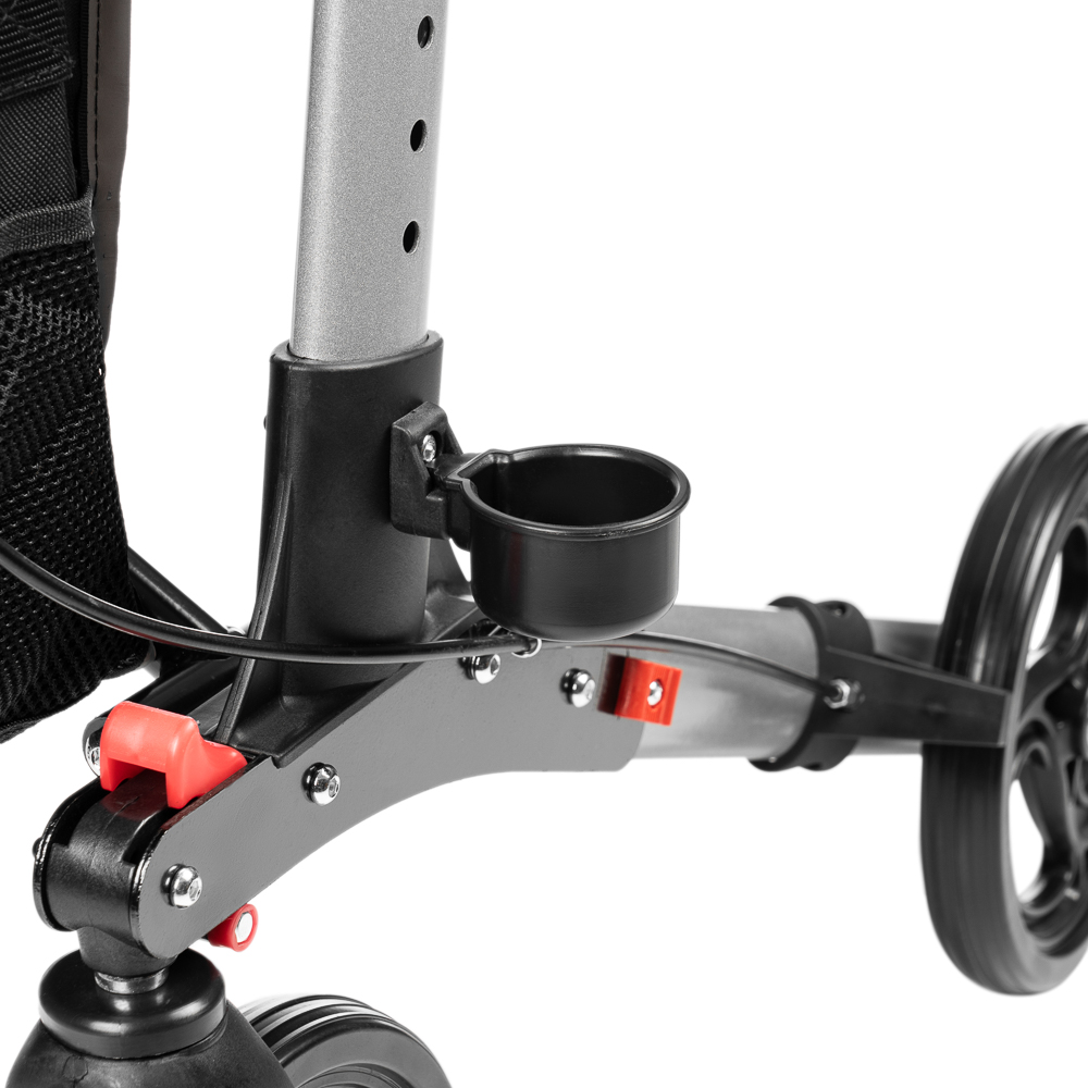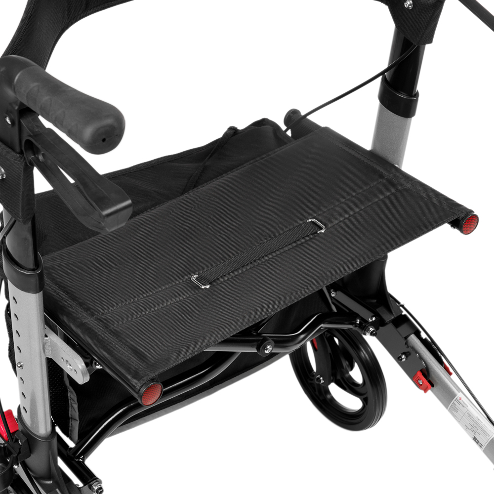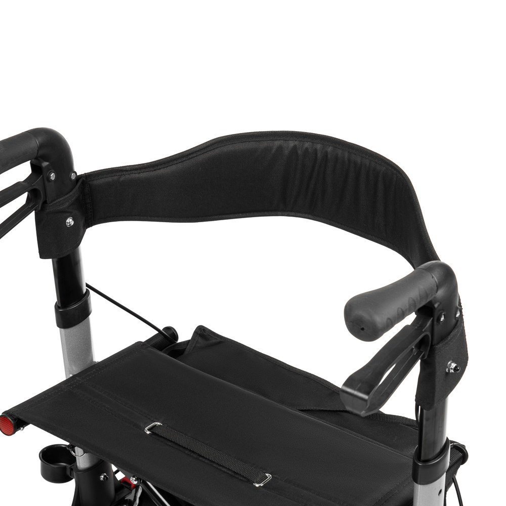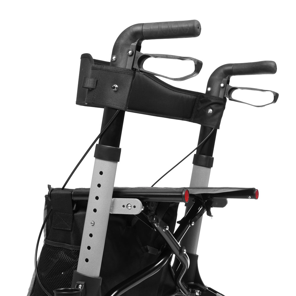- Ходунки оснащены мягким сиденьем и упором для спины, регулируемым по высоте