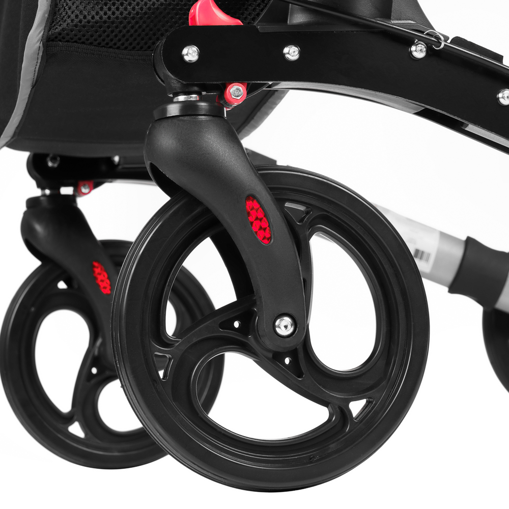 - Литые передние самоориентирующиеся колеса, задние - фиксированные