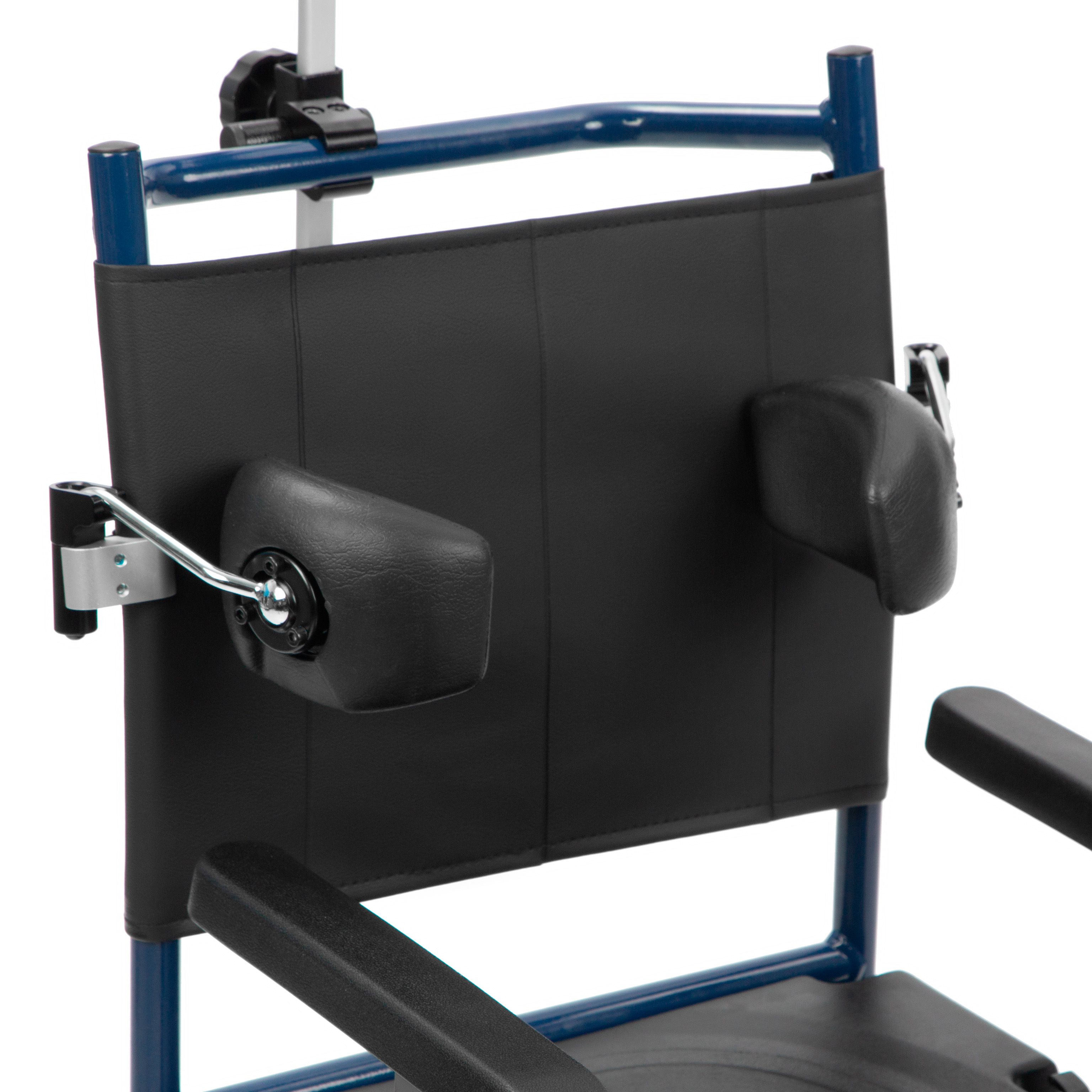 Для малоподвижных пользователей опционально предусмотрена дополнительная комплектация: съемный подголовник с возможностью регулировки угла наклона, высоты и обхвата, а также боковые поддержки, регулируемые по высоте и обхвату.